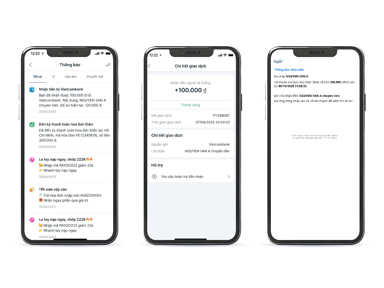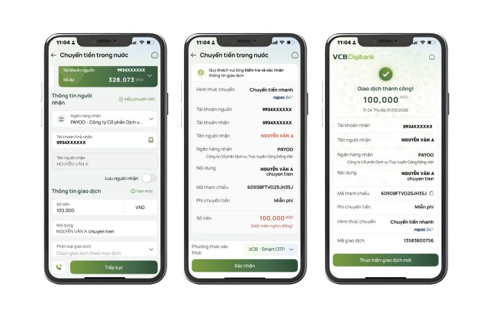 Ngay khi giao dịch hoàn tất, tiền sẽ được cộng trực tiếp vào số dư Ví Payoo. Để đảm bảo tính an toàn và minh bạch, hệ thống sẽ gửi thông báo tức thì trên ứng dụng và email xác nhận, giúp người dùng dễ dàng kiểm soát lịch sử nhận tiền mọi lúc, mọi nơi.