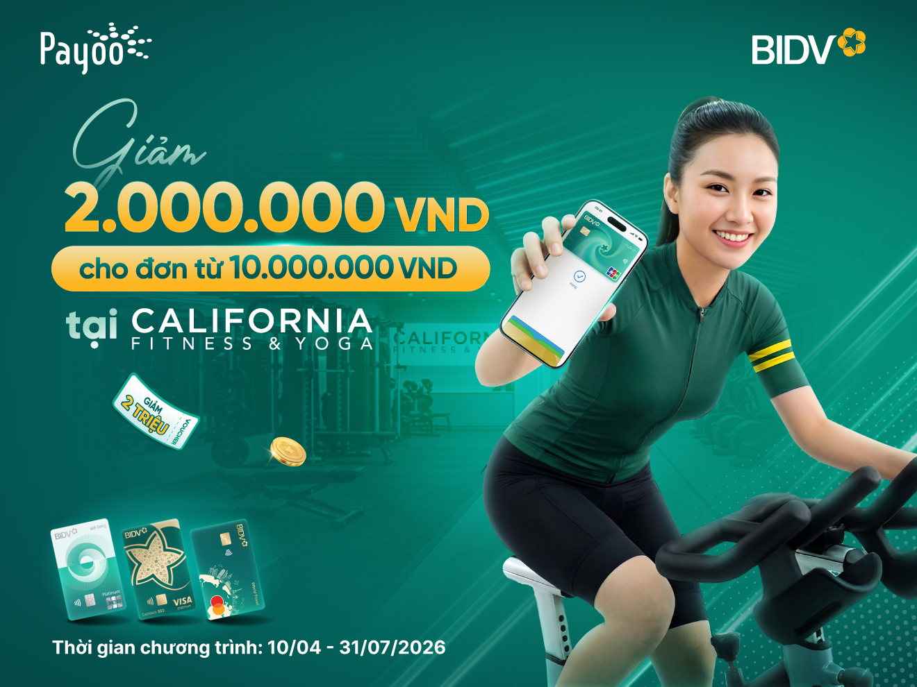Nhanh chóng lấy lại vóc dáng sau kì nghỉ tết và xây dựng lối sống năng động nay thêm dễ dàng tại California Fitness & Yoga. Payoo phối hợp với Techcombank triển khai chương trình ưu đãi 500.000 đồng cho khách hàng đăng ký các gói dịch vụ và thanh toán trả góp cho đơn hàng từ 20 triệu đồng.