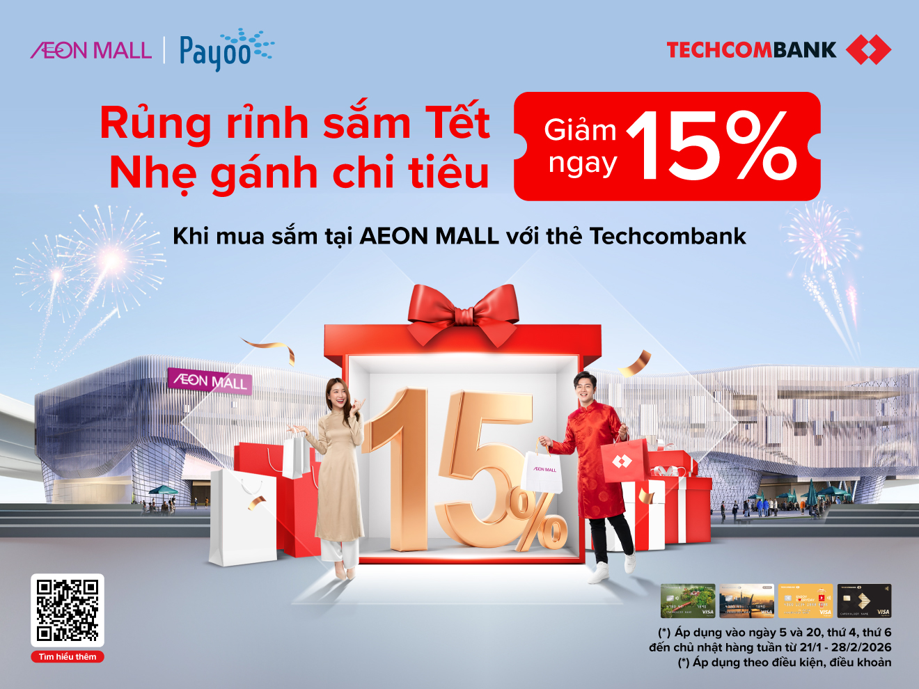 Giáng sinh gõ cửa, Tết cũng đang đến rất gần, nhu cầu mua sắm quà tặng, vật dụng trang trí và sinh hoạt gia đình nhiều hơn. Trong giai đoạn cao điểm này, việc chi tiêu thông minh trở thành ưu tiên của nhiều người tiêu dùng, đặc biệt khi mua sắm tại các trung tâm thương mại. Bắt nhịp với nhu cầu thị trường thời gian này, Mastercard, Napas, Payoo và AEON MALL phối hợp triển khai chương trình ưu đãi giảm 15%, tối đa 100.000đ nhằm mang đến trải nghiệm mua sắm thuận tiện cho khách hàng.