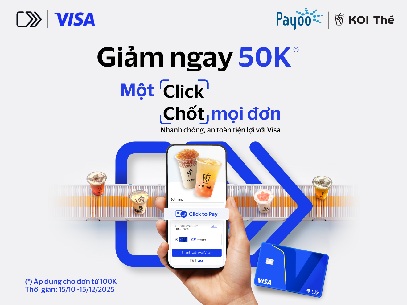 Nhâm nhi trọn vị KOI Thé, giảm ngay 50.000đ với Click to Pay | Visa