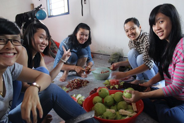 Vừa tới nơi, mỗi người góp một tay chuẩn bị cho bữa tiệc tất niên. Các anh em trai nhóm thì dựng sân khấu, nhóm thì nướng đồ ăn. Các chị em gái nhóm nhặt rau, xào nấu, nhóm chuẩn bị chén đĩa, nhóm gọt trái cây. Vui nhất là những em bé, thành viên nhí của Payoo, chạy nhảy vui đùa dưới những tán cây ngoài vườn, chỉ trỏ khi lần đầu tiên thấy chim bồ câu, đàn vịt…