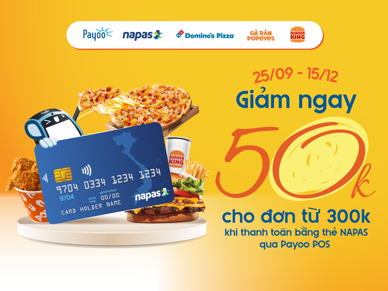 Bạn trẻ mê thưởng thức các món ăn quốc tế nhanh gọn như gà rán, pizza hay burger từ những thương hiệu hàng đầu thế giới nay có lý do để tụ tập nhiều hơn. Burger King, Popeyes và Domino’s Pizza đồng loạt mang đến chương trình giảm giá hấp dẫn khi thanh toán bằng thẻ NAPAS qua Payoo POS.